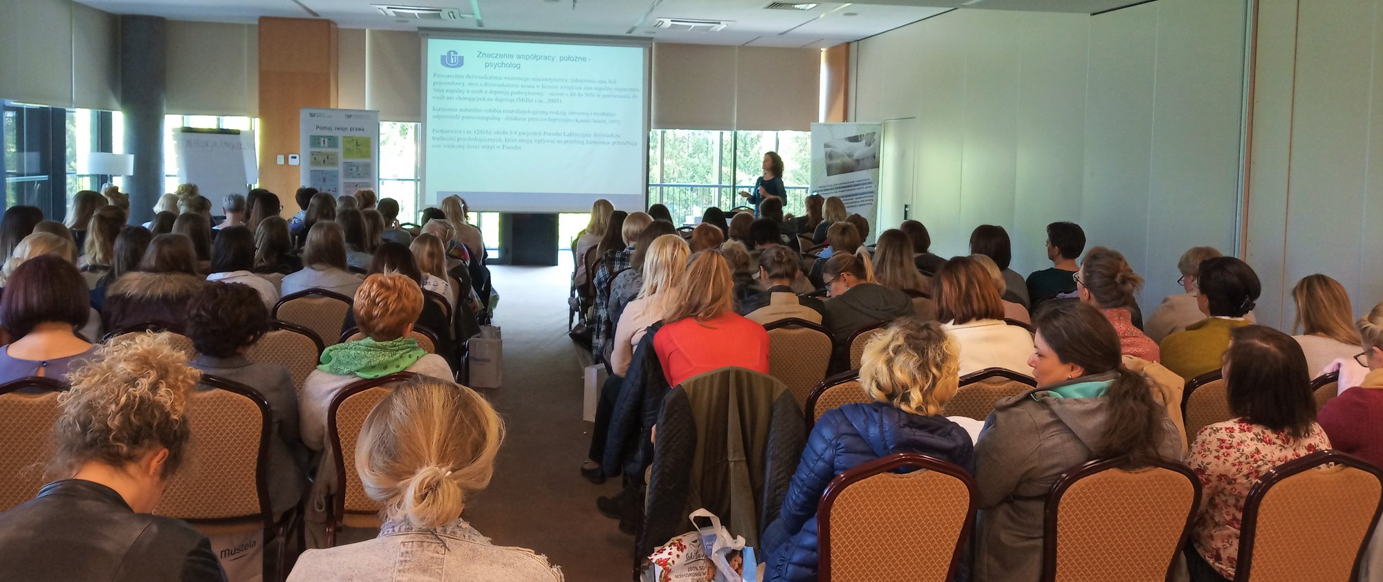 Podczas spotkań konferencyjnych zastanawialiśmy się nad tym, jak badać ryzyko i nasilenie objawów depresji w okresie ciąży i po porodzie i dlaczego jest to ważne, jak zrozumieć inne spojrzenie na świat młodej generacji rodzących, jak się z nimi – w sposób satysfakcjonujący obie strony – porozumieć, jak położna może pomóc matce w początkach karmienia piersią – przekazałyśmy wiedzę w świetle najnowszych badań.